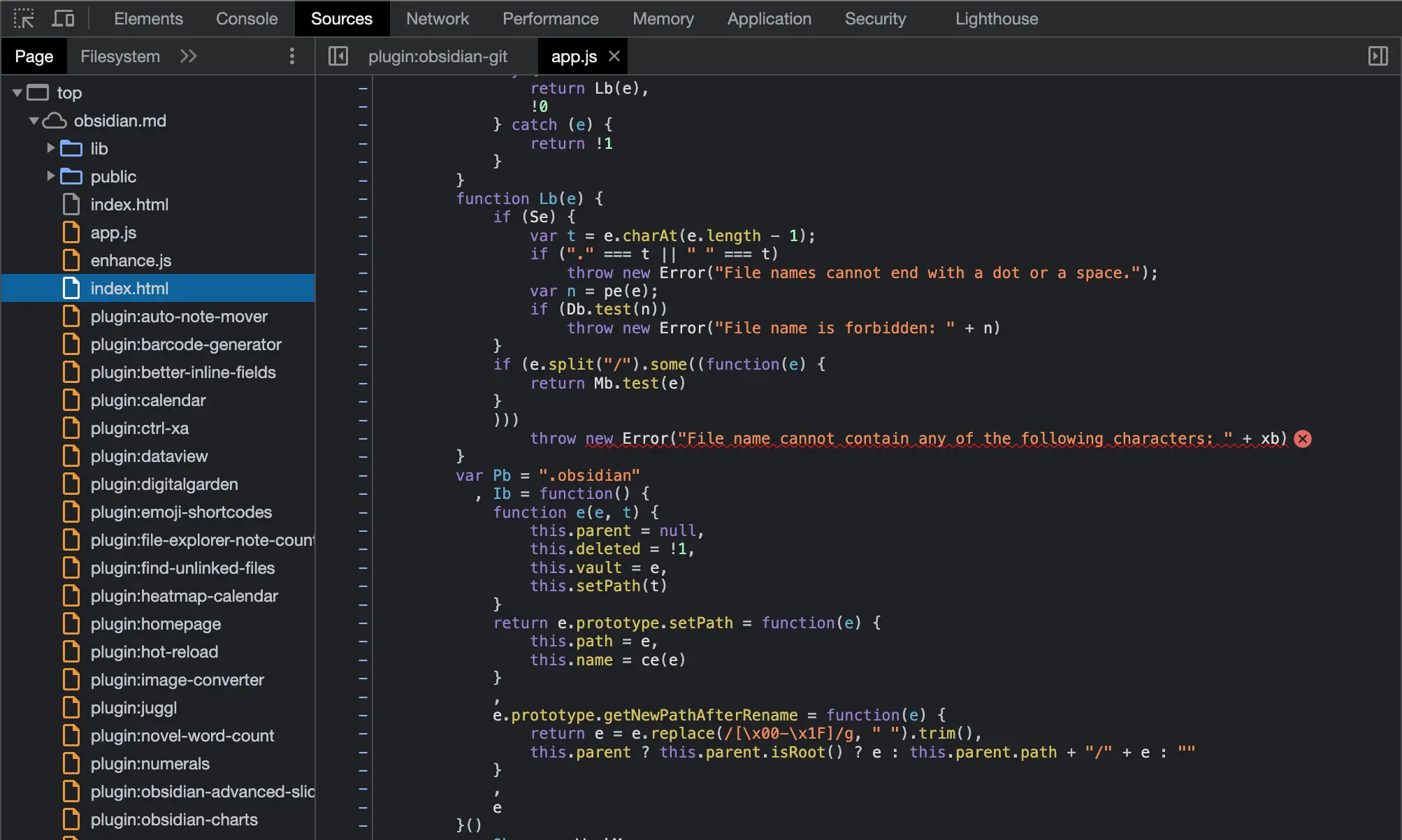 ... mais il ne faut pas oublier qu'Obsidian n'est pas un outil open-source, et que donc le code source est obfusqué ==> impasse.